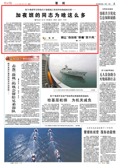 当前部队演训任务重,大项任务多,有紧急的工作,加班加点完成理所应当。但若无视工作实际、虚耗时间,搞形式上的“伪加班”,是不可取的。