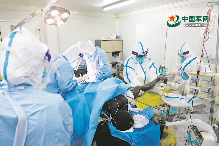 “一名尼日尔籍维和士兵执行灭火任务时遭遇爆炸事故,左手及左腿严重受伤,需要转运至中国二级医院接受紧急救治。”