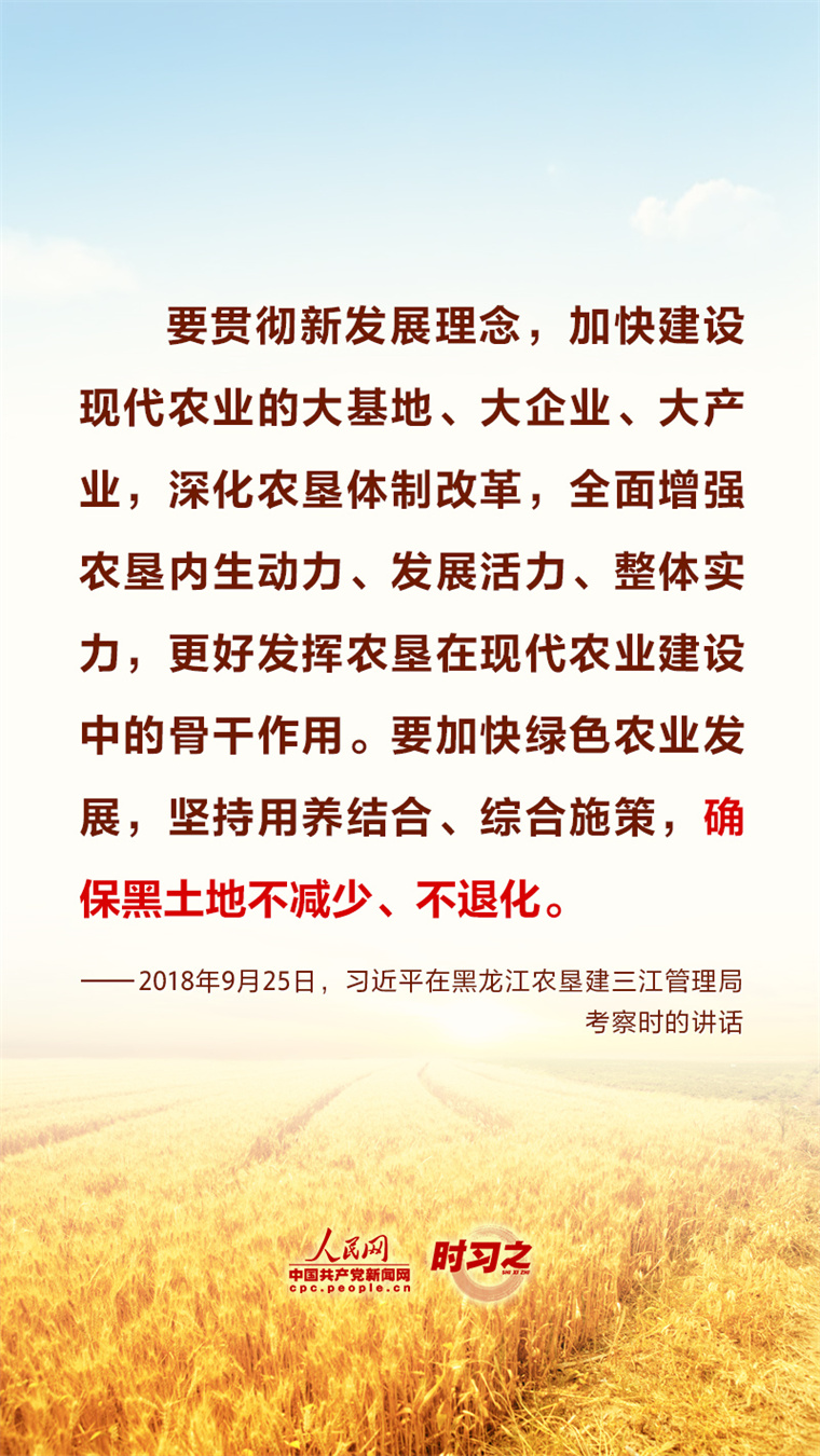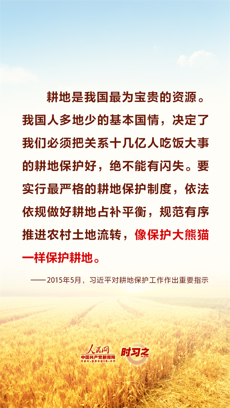 “民非谷不食,谷非地不生。”粮食安全在习近平总书记心中有着特殊的分量,他多次深入田间地头察墒情、看苗情、问收成,明确指出“耕地是粮食生产的命根子”。耕地是我国最为宝贵的资源,坚持藏粮于地、端稳中国饭碗,“希望的田野”终将麦浪滚滚、稻花飘香。