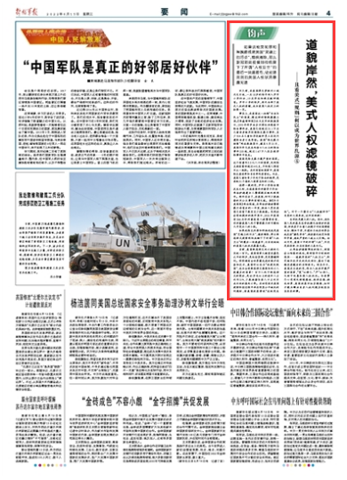 从弗洛伊德案绵延的怒火,到国会山陷落的混乱,再到喀布尔时刻的狼狈……道貌岸然的“人权卫士”,终究经不住历史的风吹雨打,露出了遮掩在滤镜后的丑陋面目。时至今日,美国应正视的是,作为人权赤字最严重的国家,“宽”以律己、“严”以待人,无助于改善本国人权状况。与其费尽心思到处树假想敌、刷存在感、祸乱世界,美国政客不如多想想,如何才能为解决自身人权问题多做些实实在在的事。