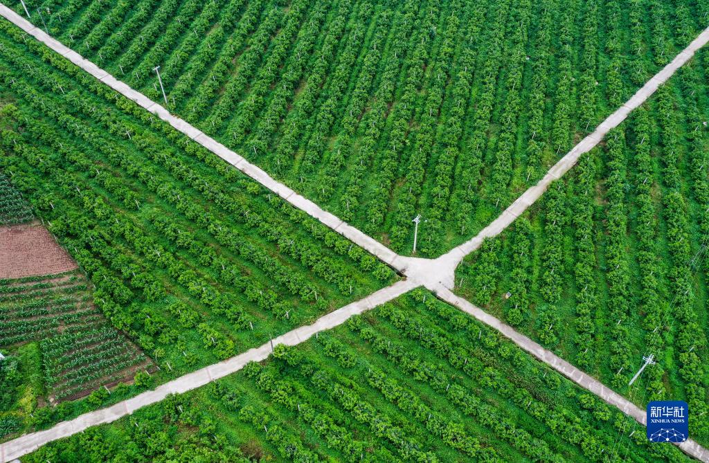 这是5月25日拍摄的重庆市忠县新立镇柑橘种植基地(无人机照片)。新华社记者 王全超 摄