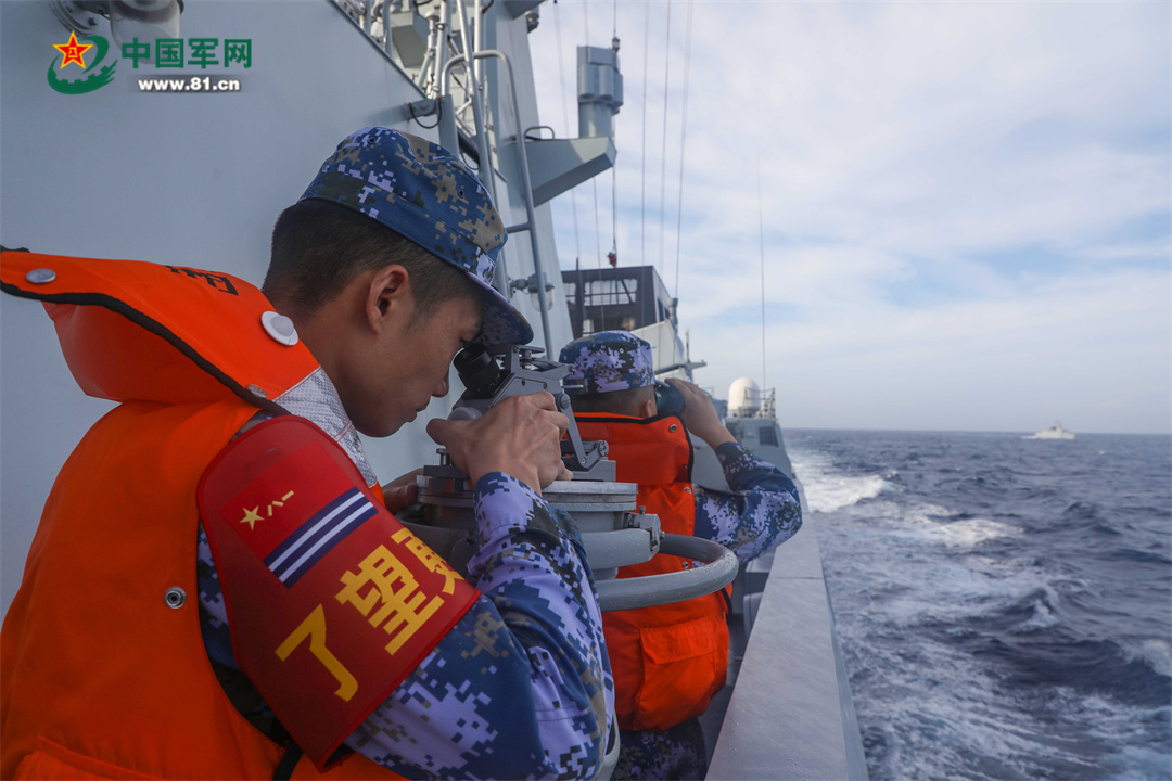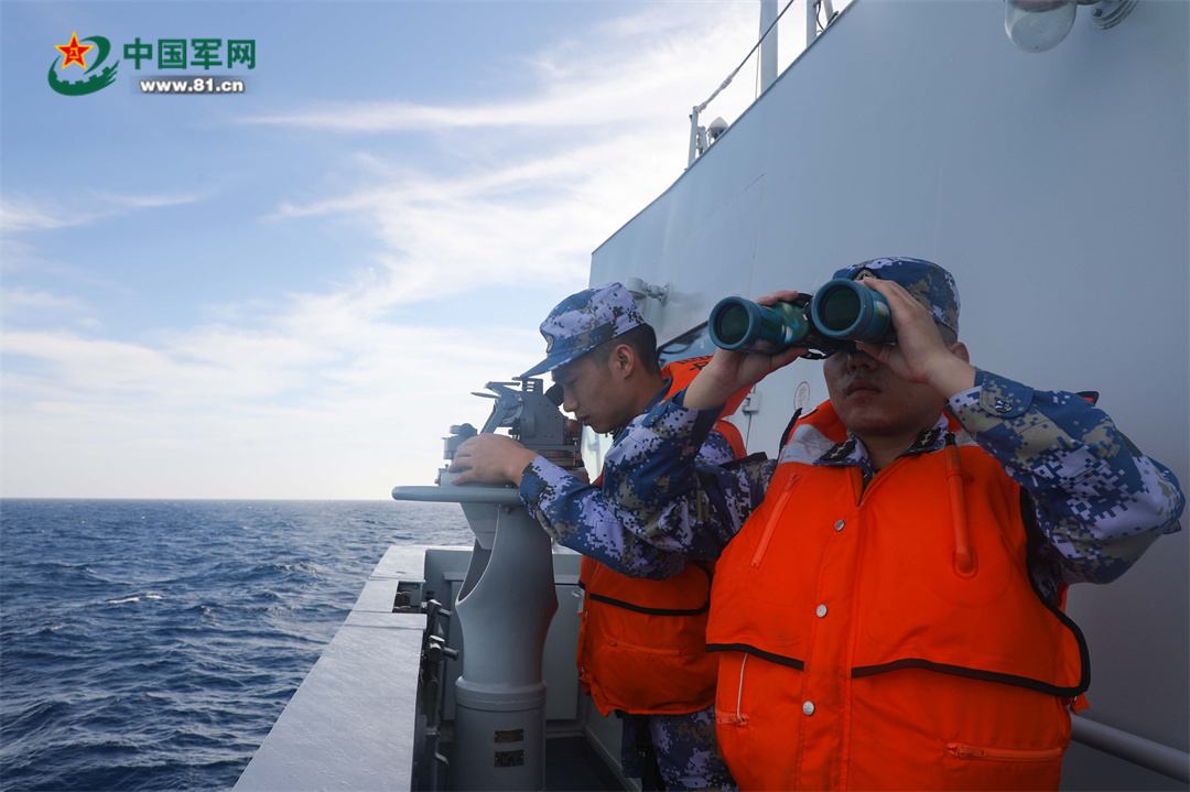6月22日,参加中越北部湾第32次联合巡逻的中方舰艇官兵正在观察海区情况。张彬 摄