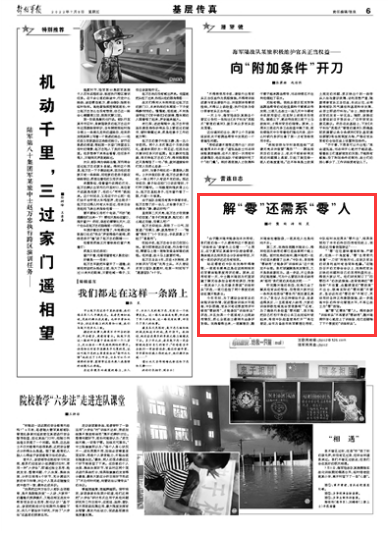 听完腾兴瑞的抱怨,沈涛又去了解其他官兵的想法,没想到大家对这一条和其他类似“零系列”规定意见真不少。“我也认为这种做法不妥,容易适得其反,一旦班里有人缺考,大家的训练积极性难免会受到影响”“还有,为了确保内务检查‘零问题’,我只能把自己打扫干净的公共卫生间临时锁起来,等到中队检查前再打开”“再往前说,去年为备战年终军事理论考核,中队临时决定周末‘零外出’,结果我预约了半年的科目四考核没赶上,到现在还没拿到驾驶证”……