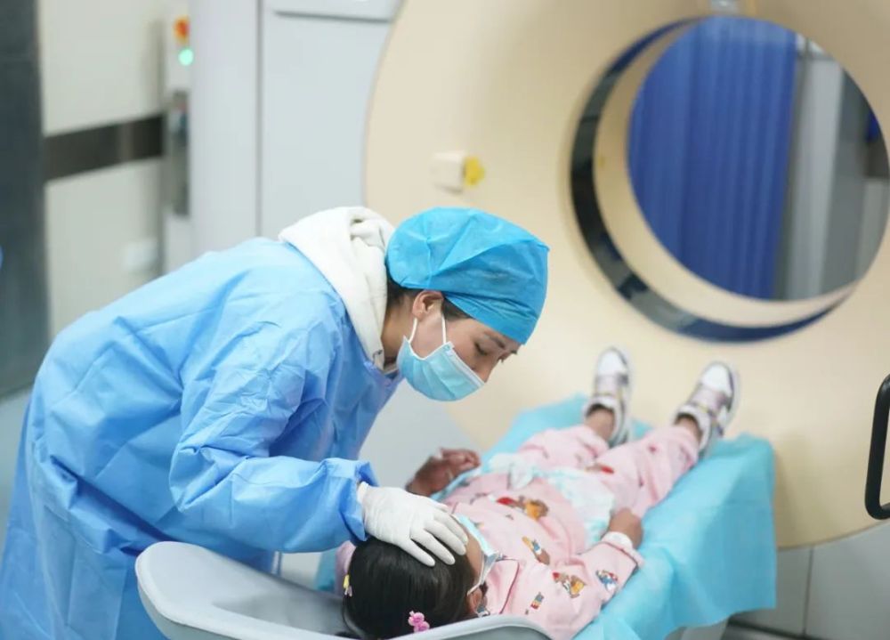 2022年5月12日,南医大二附院护士安慰准备接受检查的小患者 季春鹏摄/本刊