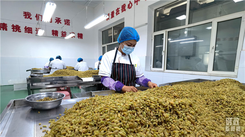 △葡萄干的分拣作业环节。(总台央视记者马亚阳拍摄)