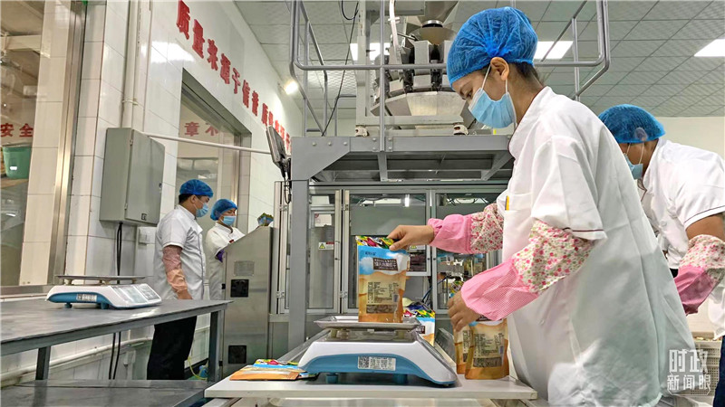 △葡萄干的称重作业环节。(总台央视记者段德文拍摄)