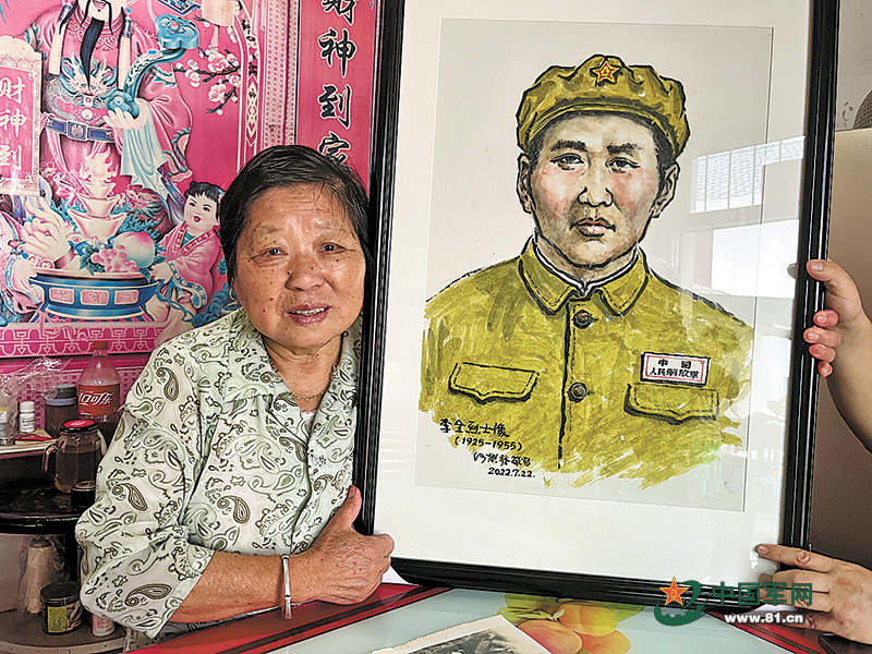 画中人仍是20多岁的青春模样,一身土黄色军装,眉头微蹙,目光坚定——7月27日,在浙江省杭州市富阳区银湖街道唐家坞村,75岁的李美林终于等到日思夜想的画像,画像的主人公是她的父亲李全烈士。