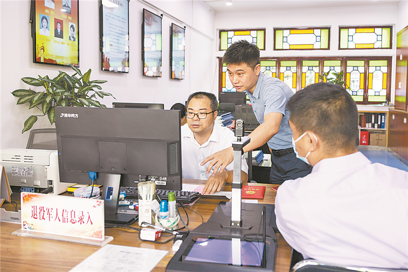 今年6月,广东省启动优待证申领工作。来服务站的退役军人,不少是咨询办证流程的。“刚接触这个新系统时,大家业务还不太熟练,给一位退役军人办证差不多得花1个小时。”杨威笑言,“为提高办事效率,我们组织街道12个居委专干开展3次技术培训,现在从老兵进门到业务办理结束只需半个小时。”
