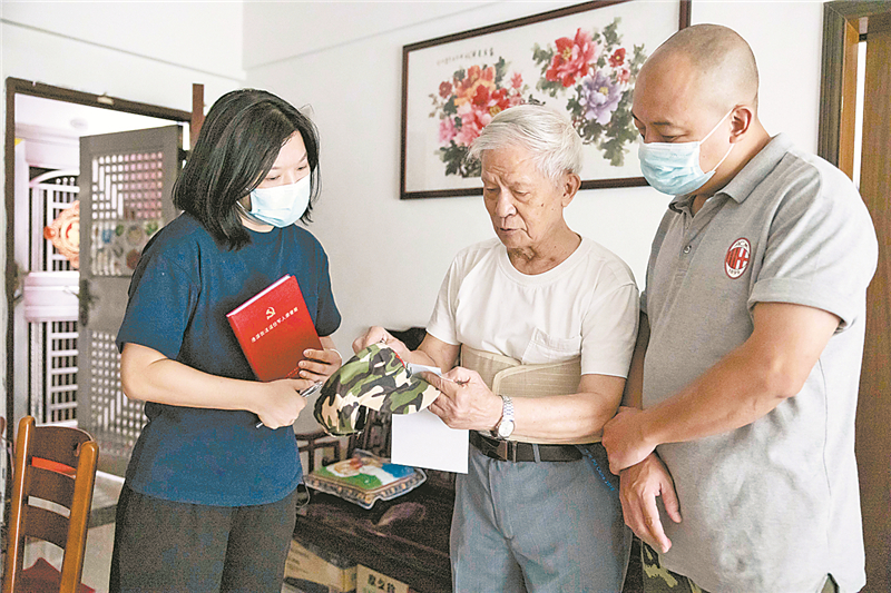 退役军人事务员上门慰问老兵。梁钜聪摄