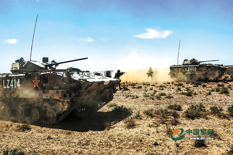 “西部·联合-2021”演习中,中方部队发起冲锋。(资料图片)陈立春摄