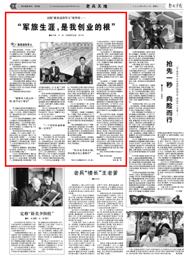 回忆自己当兵、创业的经历,张华荣感慨万千。“因为自己淋过雨,所以想为他人撑把伞。”张华荣说,自己的成长和企业的壮大,离不开部队的历练,离不开党和国家政策的支持。作为一名退役军人,他要为社会创造更多的价值,做中国强起来的参与者,做人民富起来的贡献者。