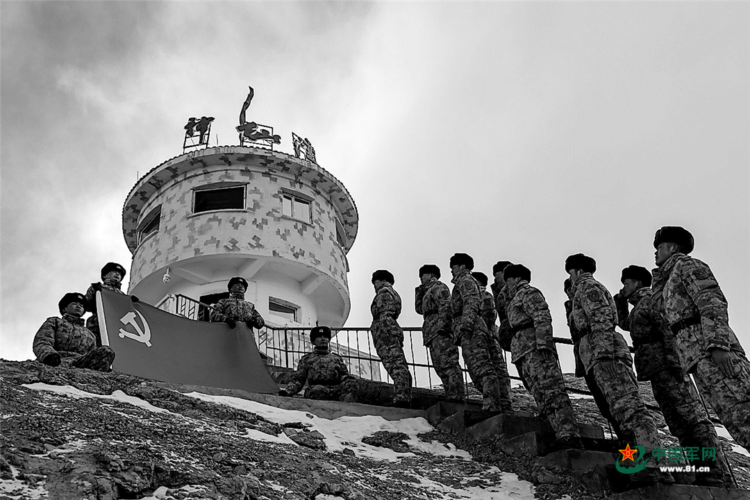 驻守高原的边防军人向党旗宣誓。图片由作者提供