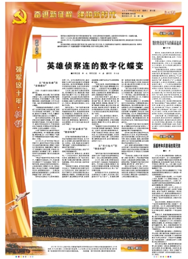 “我想的最多的就是,在党和人民需要的时候,我们这支军队能不能始终坚持住党的绝对领导,能不能拉得上去、打胜仗,各级指挥员能不能带兵打仗、指挥打仗。”习主席的胜战之问,全军官兵用实际行动作答:立起使命之“旗”、塑造使命之“力”,从战略高度标定能力、从深化改革重塑能力,从练兵备战淬火能力……广大官兵全面提高新时代备战打仗能力,在战位上用过硬打赢能力向党和人民报告:“强军有我,祖国放心!”