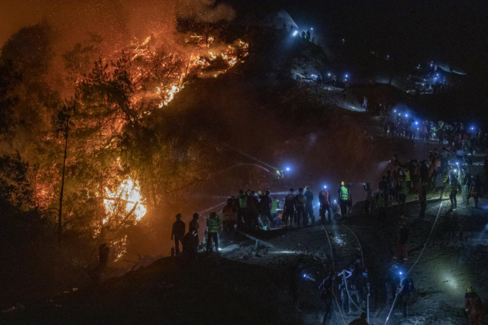 8月25日晚,在重庆市北碚区缙云山山火现场,各方救援力量在进行灭火救援。新华社 发