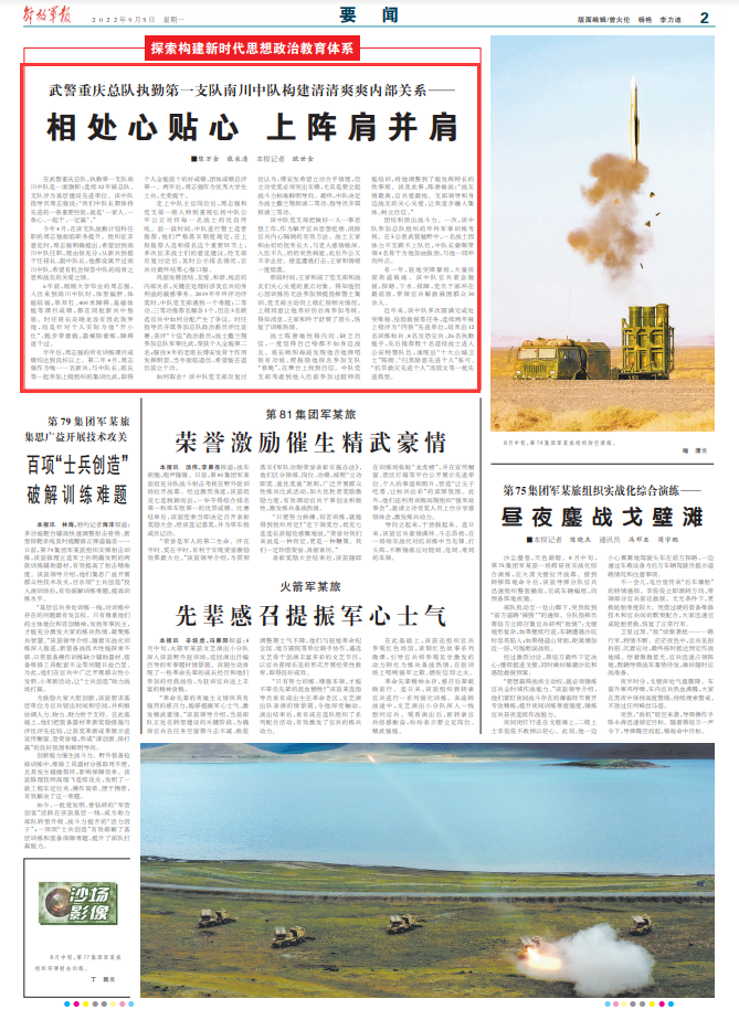 在武警重庆总队,执勤第一支队南川中队是一面旗帜:连续32年被总队、支队评为基层建设先进单位。该中队指导员周志强说:“我们中队长期保持先进的一条重要经验,就是‘一家人、一条心、一起干、一定赢’。”