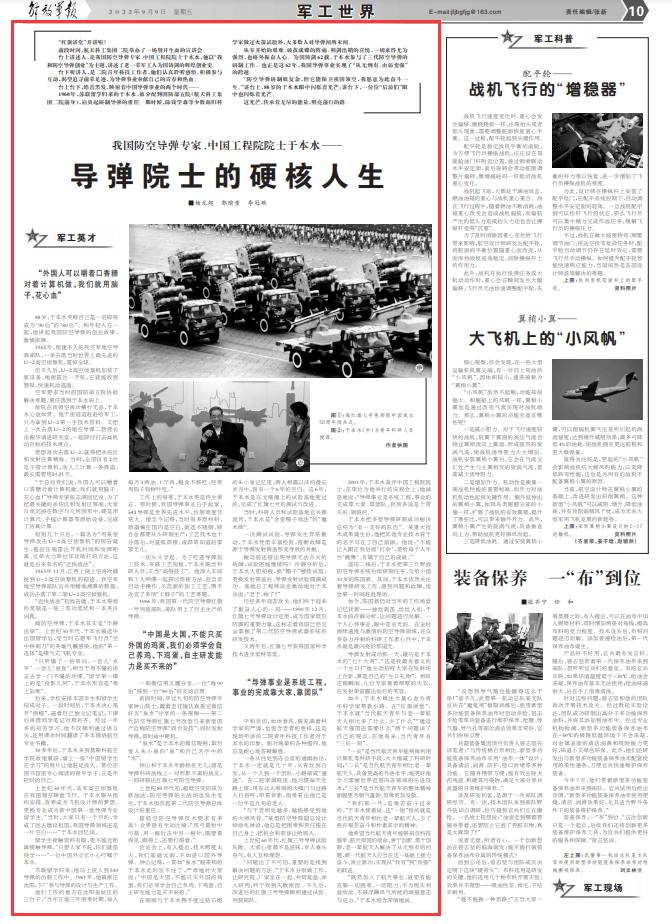 如今,陈国新仍对当年的工作场景记忆犹新——抽丝剥茧、丝丝入扣,于本水的冷静分析,让问题迎刃而解。一个人心怀事业,眼中是有光的。在全时演绎速度与激情的防空导弹领域,在众多奋力冲刺的科研工作者心目中,于本水就是最闪亮的那道光。
