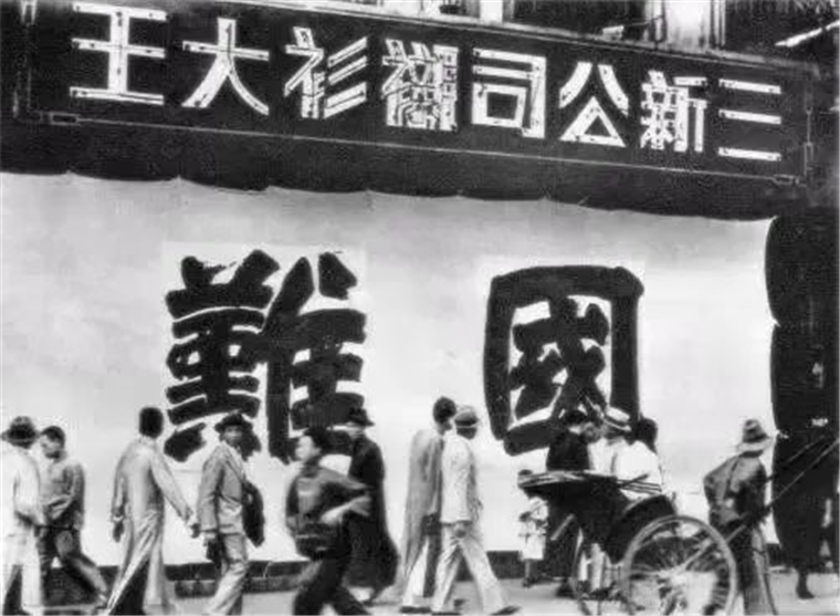 “九一八”事变后,上海街头的抗日标语。资料图