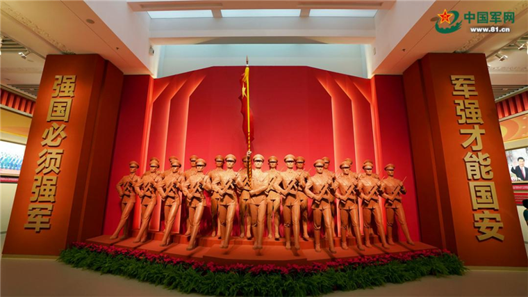 “领航强军向复兴——新时代国防和军队建设成就展”展厅一角。