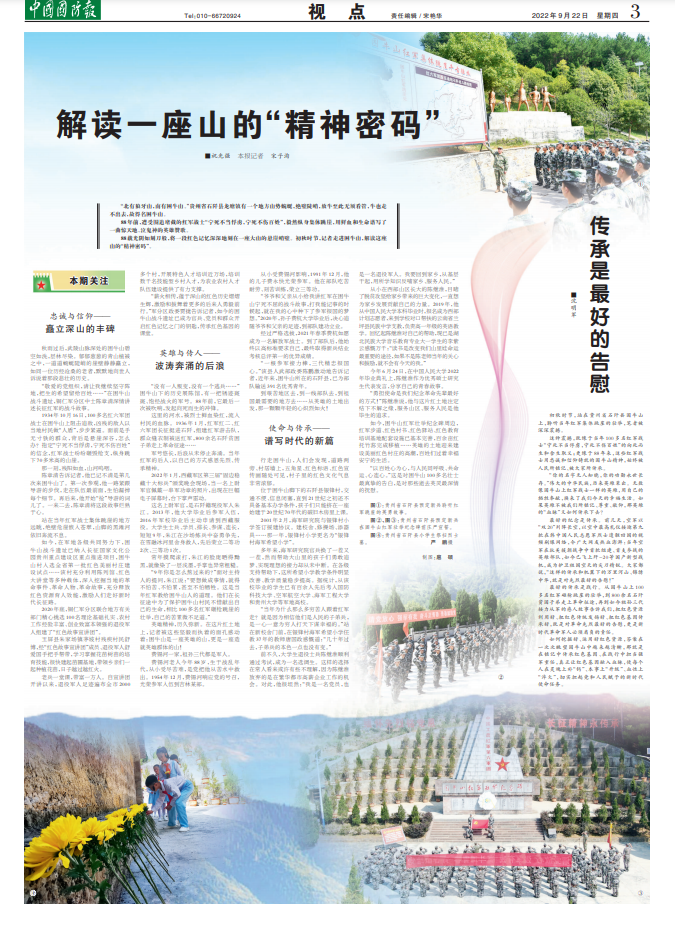 “薪火相传,蕴于深山的红色历史熠熠生辉,激励和鼓舞着更多的后来人勇毅前行。”军分区政委贾捷告诉记者,如今的困牛山战斗遗址已成为官兵、党员和群众开启红色记忆之门的钥匙,传承红色基因的课堂。