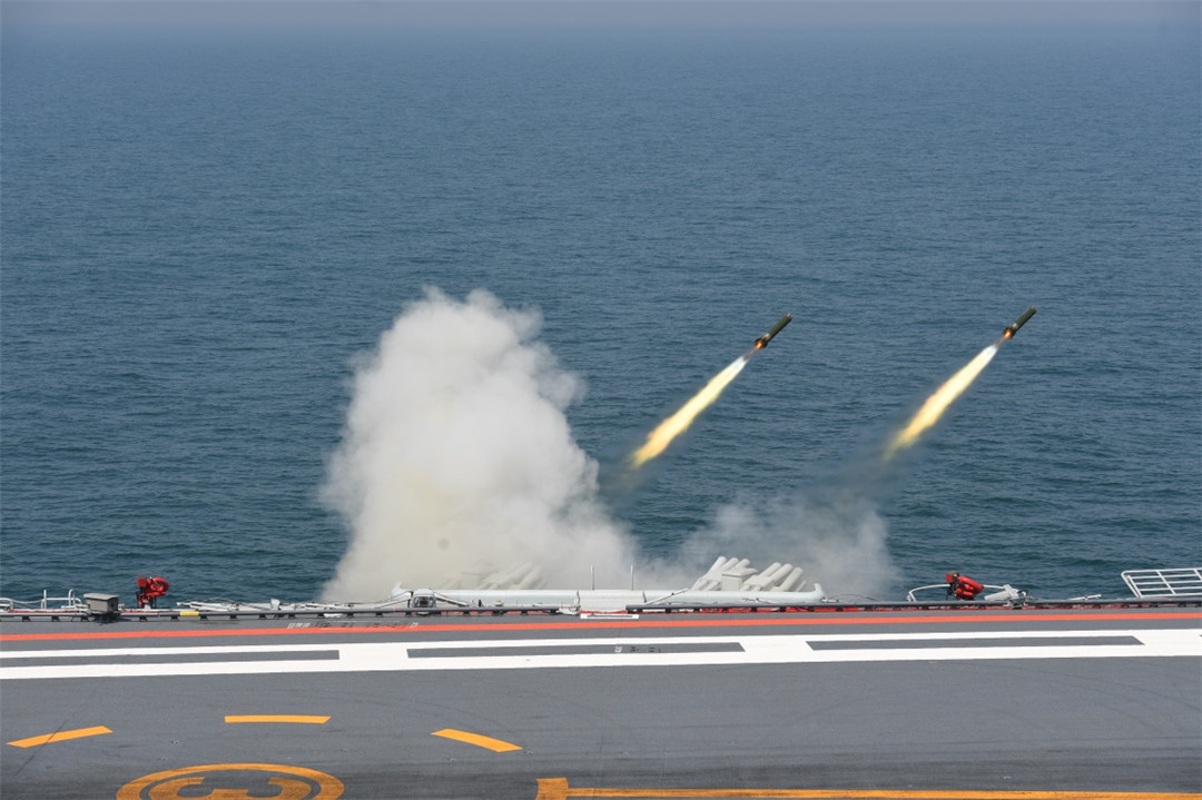 在某海域,辽宁舰组织实弹射击(资料照片)。新华社发(白杨 摄)