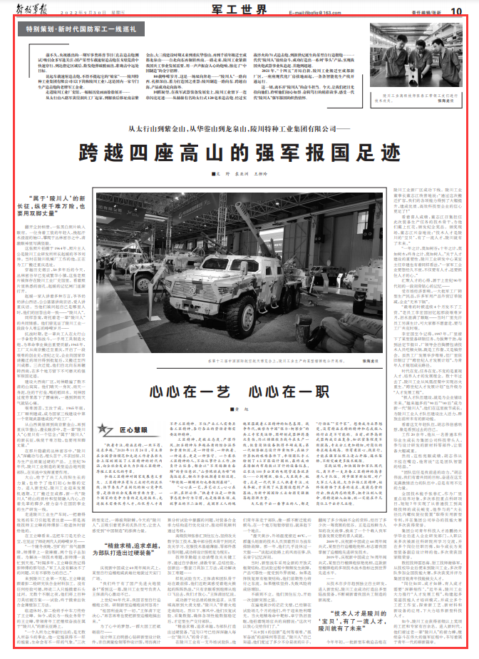 “精益求精,追求卓越,为部队打造出过硬装备。”这句口号已经深深融入每一位“陵川人”的骨子里。