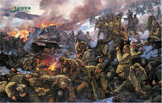 松骨峰阻击战油画。