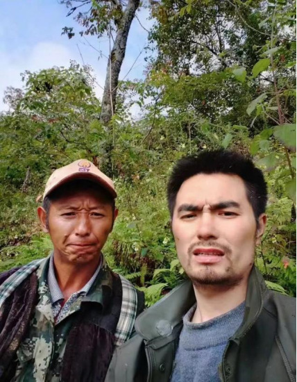 获救后的甘宇(右)和救助他的村民倪太高(左)合影。