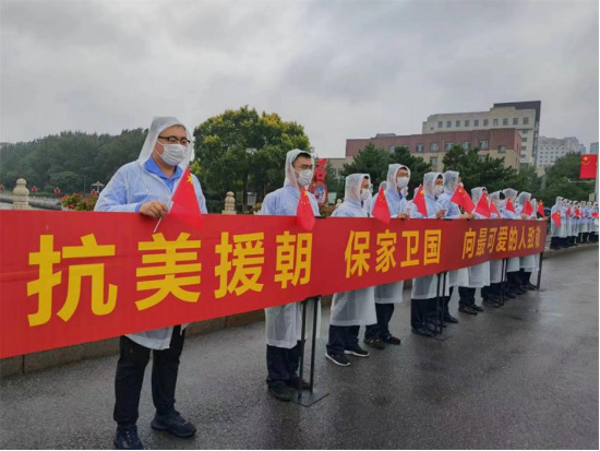 9月16日,沈阳各界群众在沈阳桃仙机场至抗美援朝烈士陵园沿线,列队欢迎英雄回家。人民网发