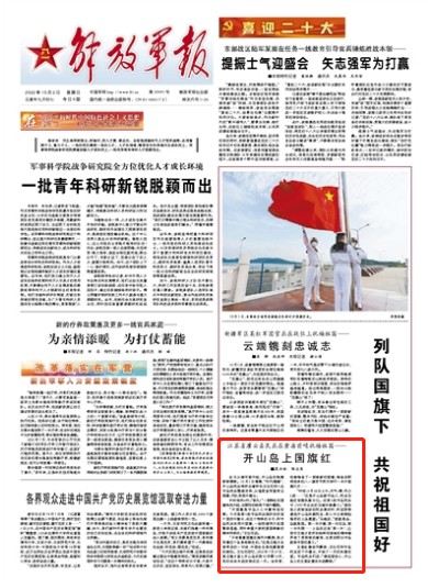 时针指向6时。“敬礼!”一面鲜红的国旗冉冉升起,在朝阳的映照下格外耀眼。