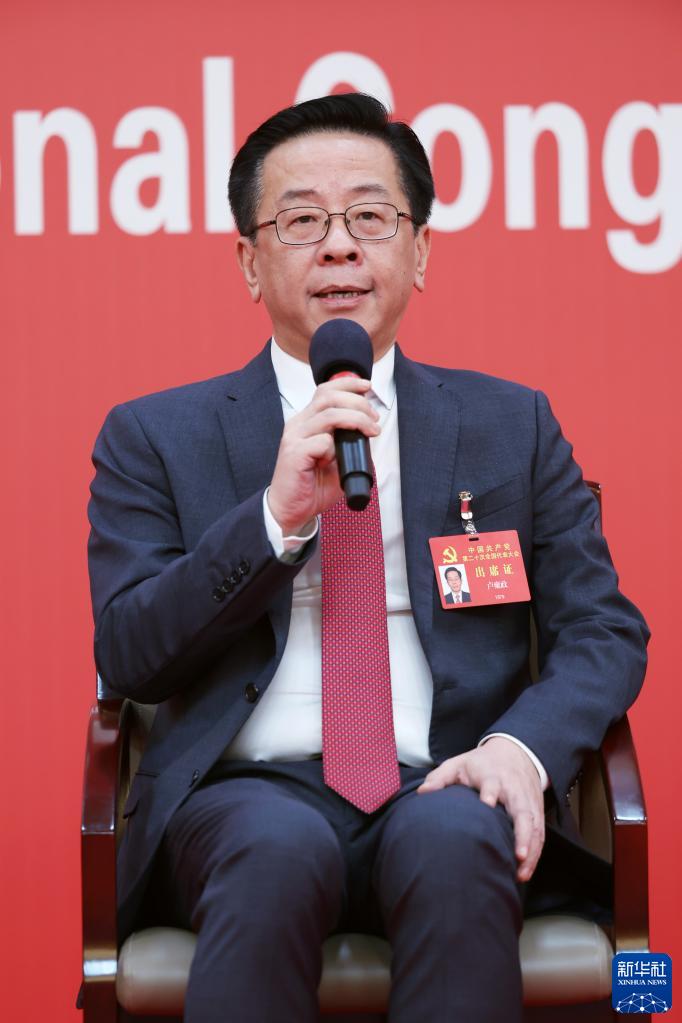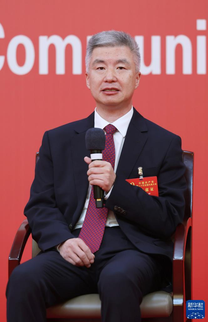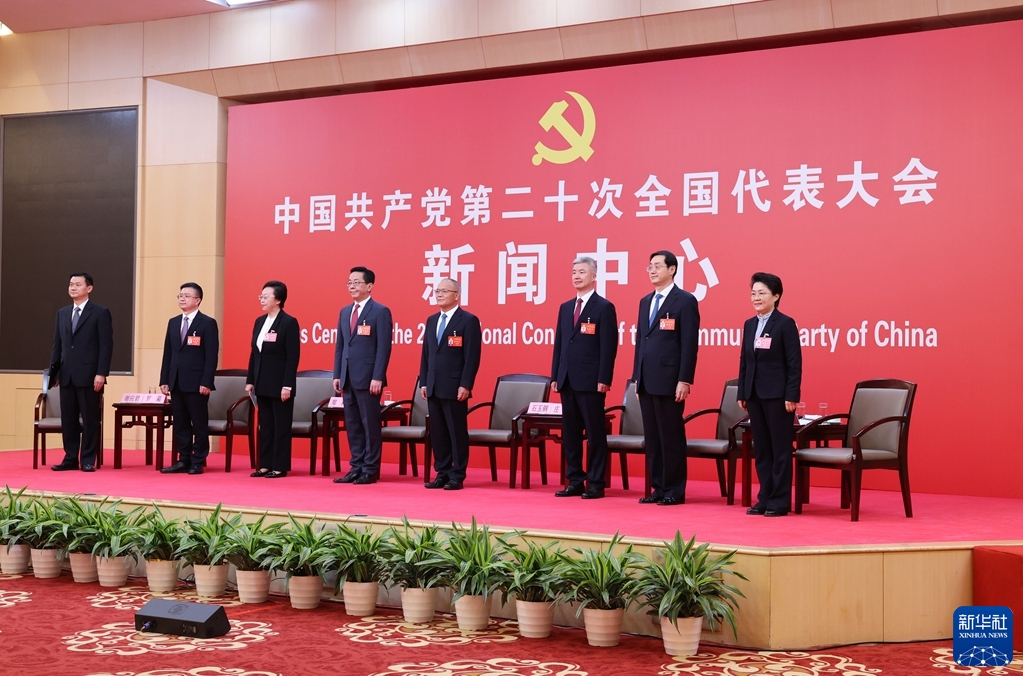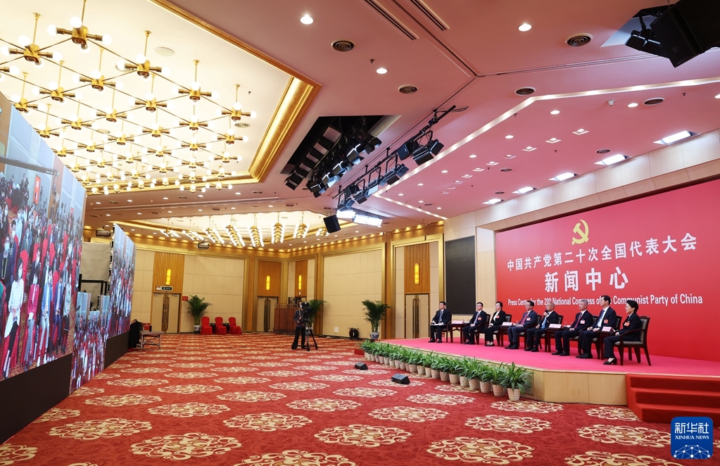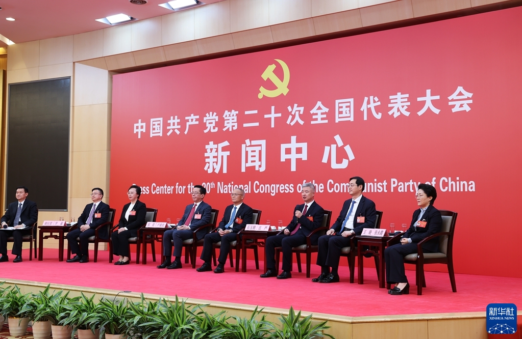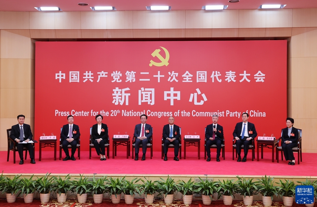 10月19日,中国共产党第二十次全国代表大会新闻中心举行集体采访。重庆、四川、贵州、云南、西藏、陕西、甘肃代表团新闻发言人出席,介绍代表团学习讨论二十大报告情况,并回答记者提问。新华社记者 陈建力 摄