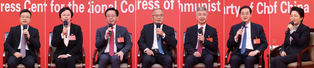 这7位新闻发言人是:重庆市委常委、秘书长罗蔺,四川省委常委、宣传部部长郑莉,贵州省委常委、宣传部部长卢雍政,云南省委副书记石玉钢,西藏自治区党委常务副书记庄严,陕西省委常委、常务副省长王晓,甘肃省委常委、宣传部部长张永霞。他们结合实际,讲述了党的十八大以来,各地经济社会发展取得的成就。他们表示,连日来,各代表团认真学习讨论党的二十大报告,一致认为这份报告蓝图宏伟、路径清晰,进一步指明了党和国家事业的前进方向。代表们完全赞成、坚决拥护这份报告,表示将以更加昂扬的拼搏精神在本职岗位上踔厉奋发、笃行不怠,为全面建设社会主义现代化国家贡献力量。