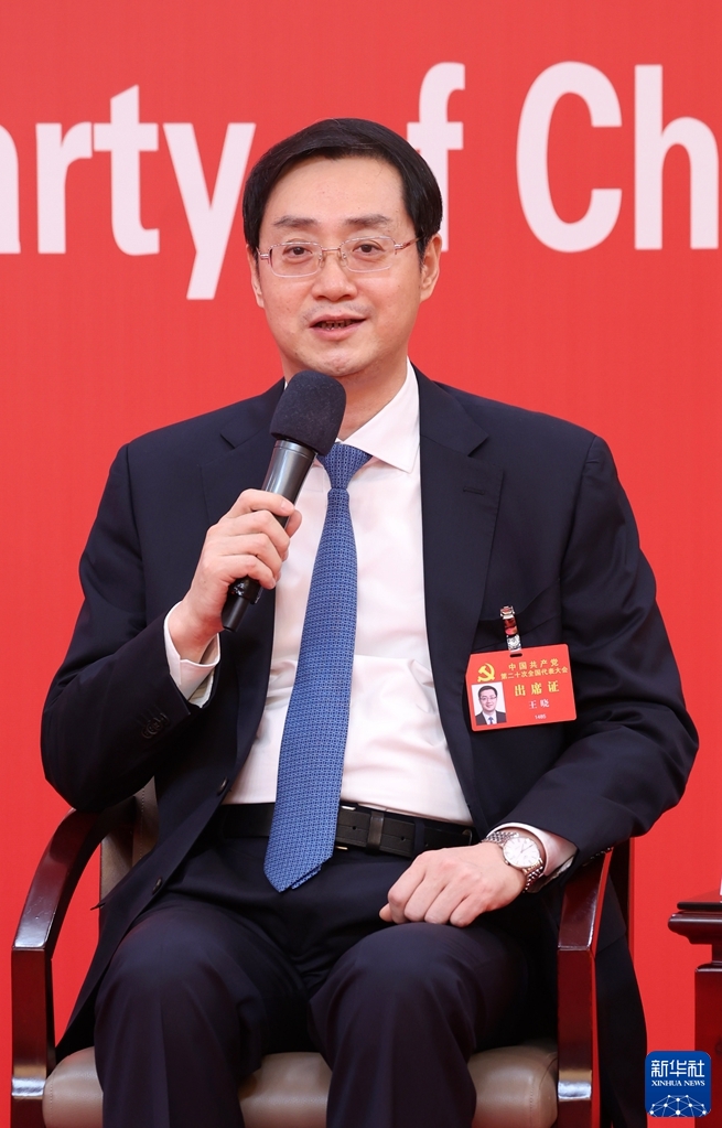 10月19日,中国共产党第二十次全国代表大会新闻中心举行集体采访。重庆、四川、贵州、云南、西藏、陕西、甘肃代表团新闻发言人出席,介绍代表团学习讨论二十大报告情况,并回答记者提问。新华社记者 张玉薇 摄