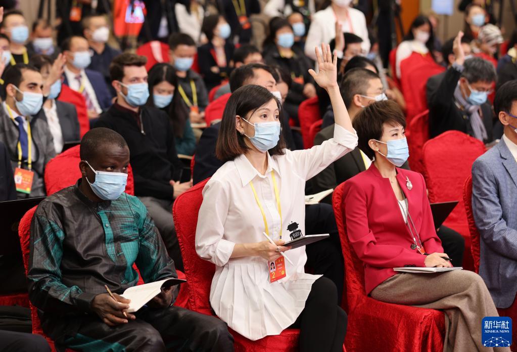 这是记者在分会场举手提问。新华社记者 殷刚 摄