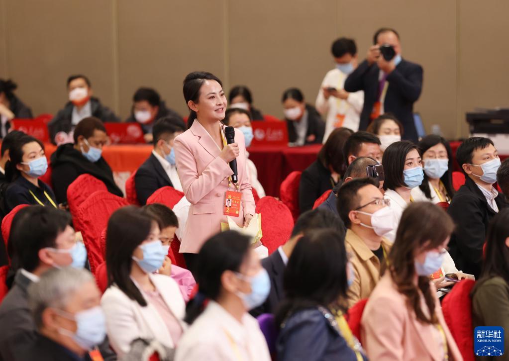 这是记者在分会场提问。新华社记者 殷刚 摄