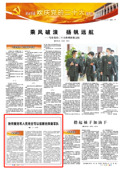 “人民军队始终是党和人民完全可以信赖的英雄军队,有信心、有能力维护国家主权、统一和领土完整,有信心、有能力为实现中华民族伟大复兴提供战略支撑,有信心、有能力为世界和平与发展作出更大贡献。”习主席在党的二十大报告中的这一重要论述,是党的核心、人民领袖、军队统帅对全军官兵的极大鼓舞激励,凝结着党和人民对我军的厚望重托,为新时代人民军队标定了使命任务和前行方向。