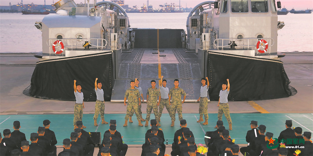 某气垫艇大队营区地处偏僻海边。这一日,小分队跋涉2个多小时,到达海边的气垫艇泊位。他们在官兵的训练场地上搭起简陋舞台,用精彩表演为刚刚结束训练的官兵送上慰问。
