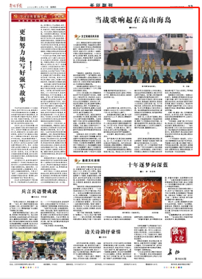 近日,南部战区海军为加强对基层文化建设指导帮建,丰富基层官兵精神文化生活,激励引导官兵以昂扬精神面貌和一流练兵成效欢庆党的二十大胜利召开,组织文艺小分队深入一线部队开展文化服务走基层活动。小分队发扬“乌兰牧骑”精神,走进高山海岛,深入哨位战位,用嘹亮的歌声、优美的舞姿,为官兵送去暖心服务和真情慰问,激发官兵练兵动力。