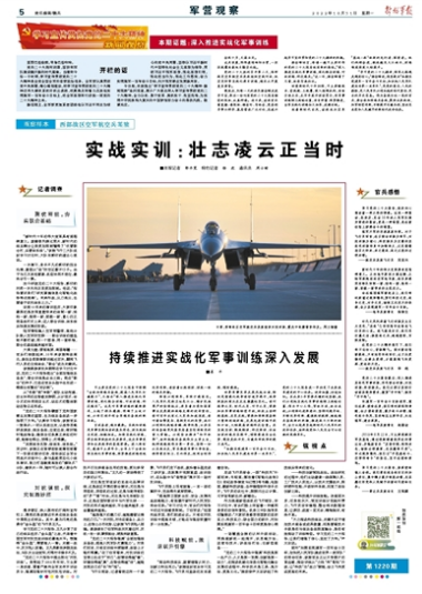 强军兴军的洪流滚滚向前。对于飞行员而言,在以联合训练为牵引、对抗训练为核心、科技练兵为支撑的实战化训练体系中加钢淬火,必定能锻造召之即来、来之能战、战之必胜的过硬本领。