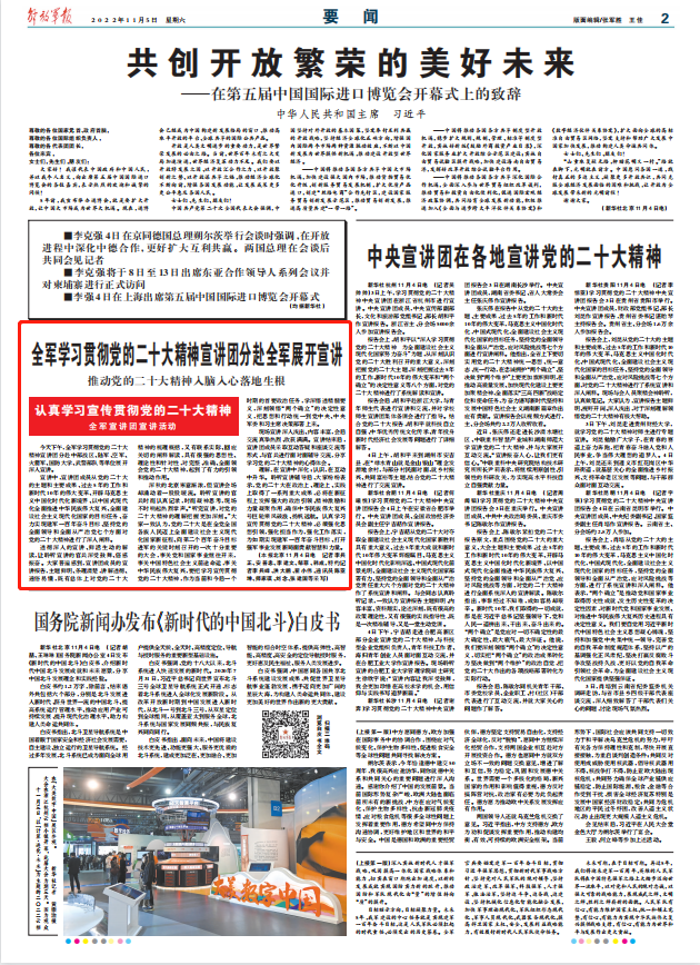 今天下午,全军学习贯彻党的二十大精神宣讲团分赴中部战区、陆军、空军、火箭军、国防大学、武警部队等单位展开深入宣讲。