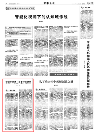 自主跨域聚优行动,夺控要点要域。前沿技术的快速发展,颠覆着传统陆上作战体系的组织形态、指挥关系和运行机制。通过先进的网络信息体系,能够将分散部署在各个作战领域的作战平台和作战单元链接为“智能+”陆上作战体系,有助于发挥出更大的作战效能。据悉,美军在袭击伊朗将军苏莱曼尼时,就是依托其强大的侦察监视、指挥控制、综合保障等作战体系,通过人员远程操控攻击无人机,结合图像识别等技术准确定位目标实施猎杀,以较小的代价达到了较大的作战效果。未来陆上作战可以依托“智能+”陆上作战体系即时跨域联动,聚优构建陆上智能指挥网链、杀伤网链、保障网链,自适应采取自主精准袭扰、自主精准打击等战法手段,对要点要域作战目标展开急速猛烈的攻坚行动,快速形成压倒性夺控优势,达成夺点控要的作战目的。