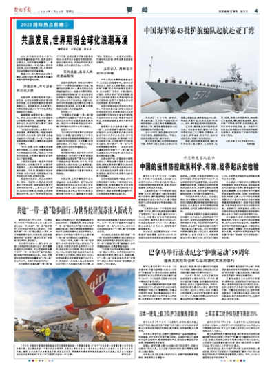 “和平、发展、合作、共赢的历史潮流不可阻挡,人心所向、大势所趋决定了人类前途终归光明。”党的二十大报告中的话语,为充满不确定性的世界注入了新的希望。