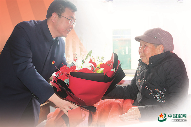 宁夏退役军人事务厅领导看望慰问一级战斗英雄顾金海烈士母亲。张国勤摄