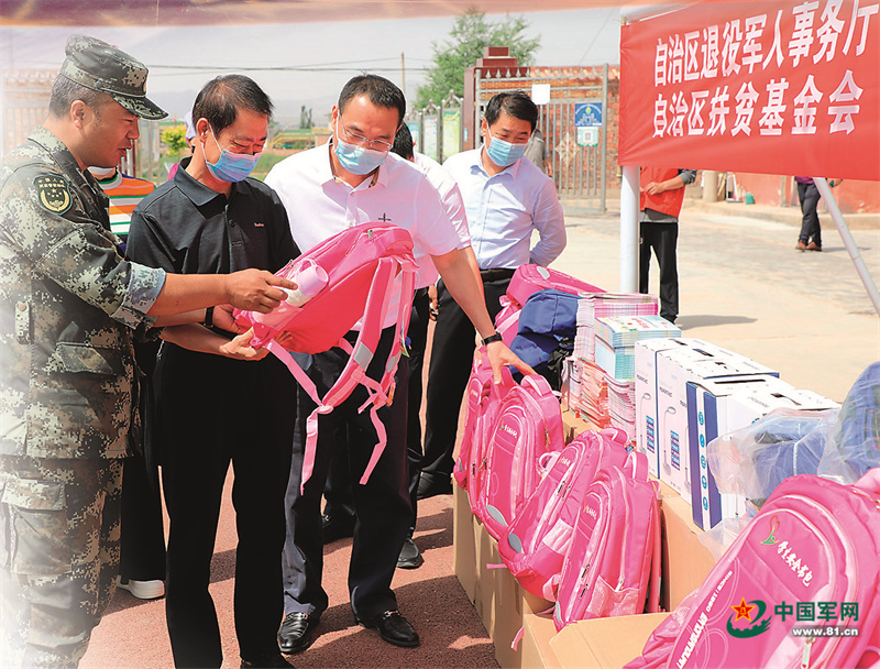 宁夏退役军人事务厅为帮扶学校学生捐赠学习用品。张国勤摄