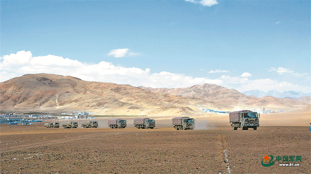 陆军某储供基地物资保障队车辆编队在机动途中。冯全全摄