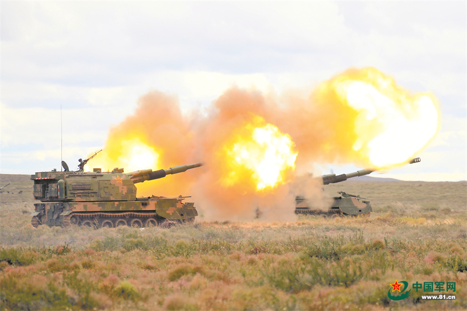 第82集团军某旅所属火炮进行实弹射击。章斐然 摄