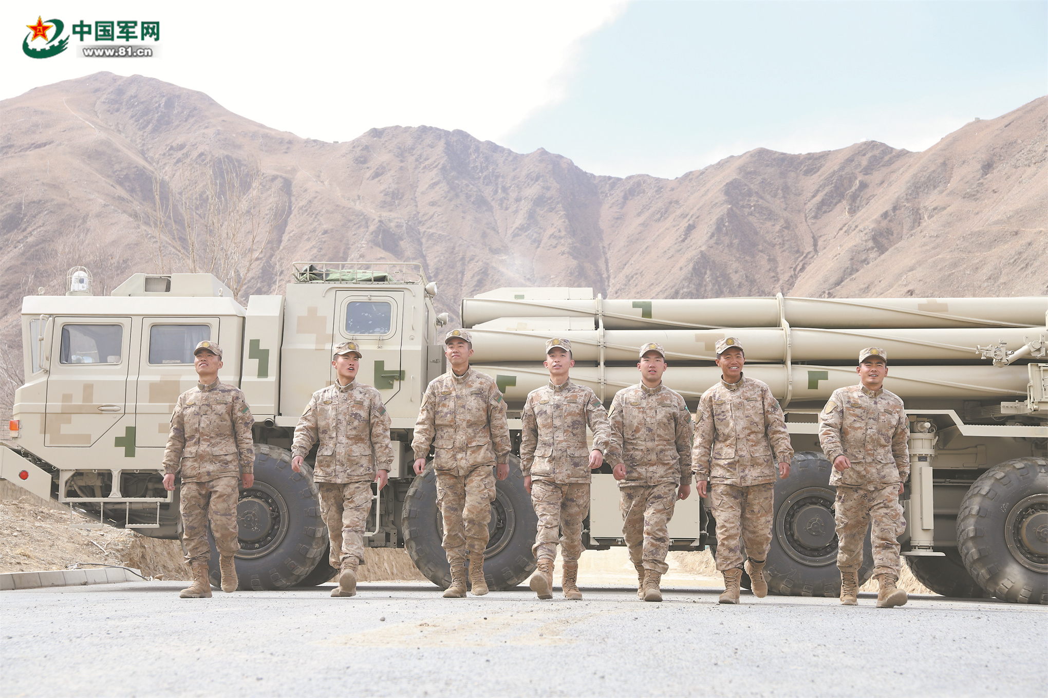 西藏军区某旅上等兵张美瀚(左四)和战友们训练归来。刘 旺摄
