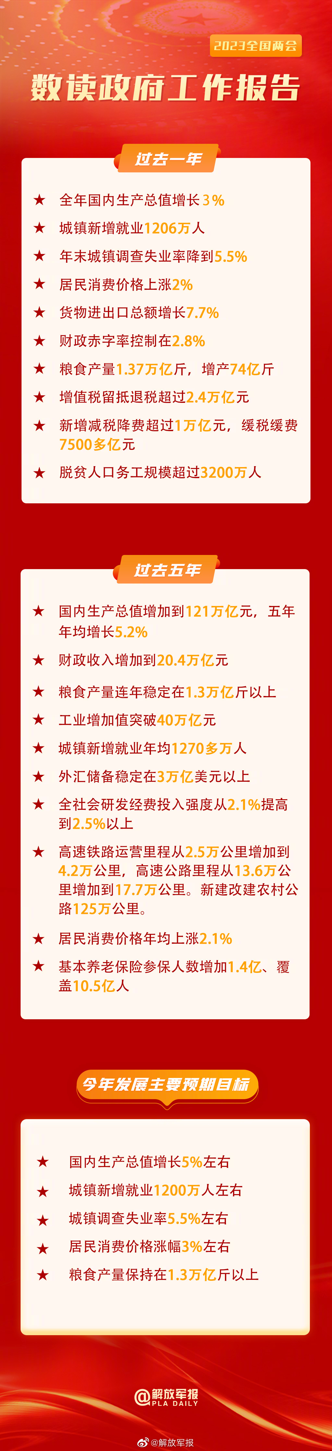 3月5日9时,十四届全国人大一次会议开幕会在北京人民大会堂举行,国务院总理李克强作政府工作报告。一图数读2023年政府工作报告!