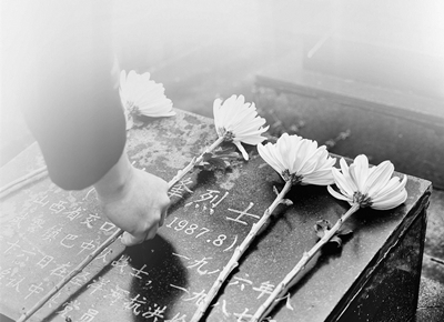 轻轻抚摸墓碑,指尖触感冰冷,内心却感到亲切。亲爱的战友,王志刚烈士,我们又来看你了。