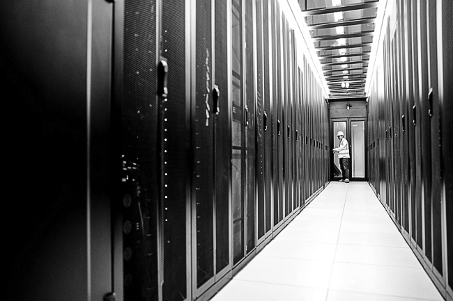 工作人员在贵州贵安新区数据中心机房内巡检。