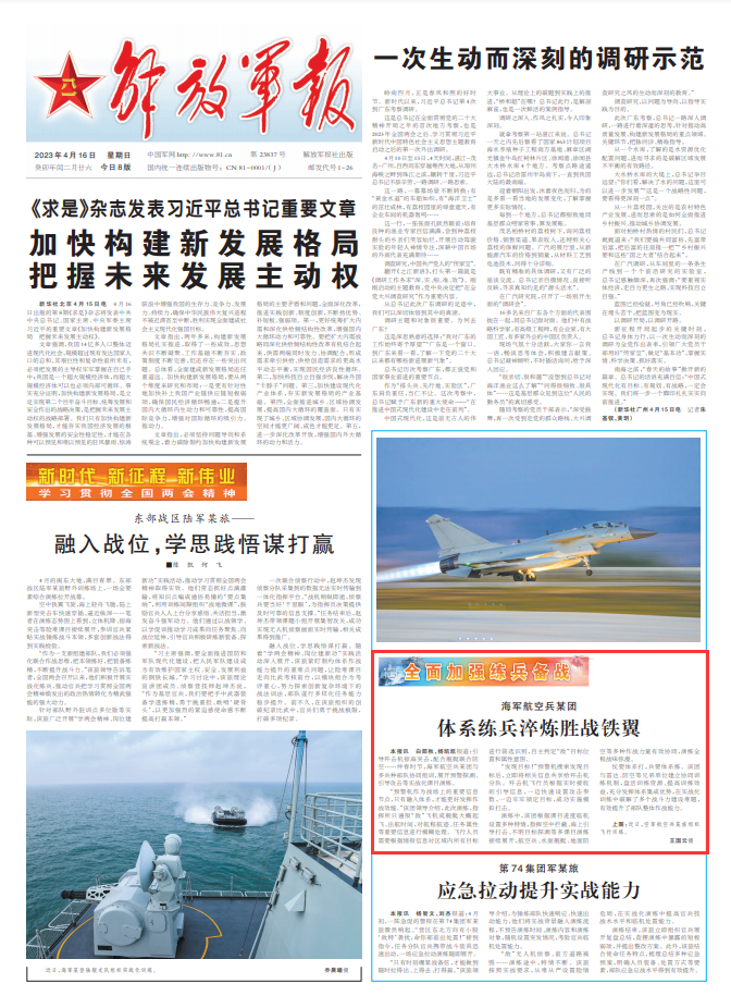 解放军报讯 白邵秋、杨凯凯报道:引导歼击机掠海突击,配合舰艇联合防空……仲春时节,海军航空兵某团与多兵种部队协同组训,展开预警探测、引导攻击等实战化课目演练。